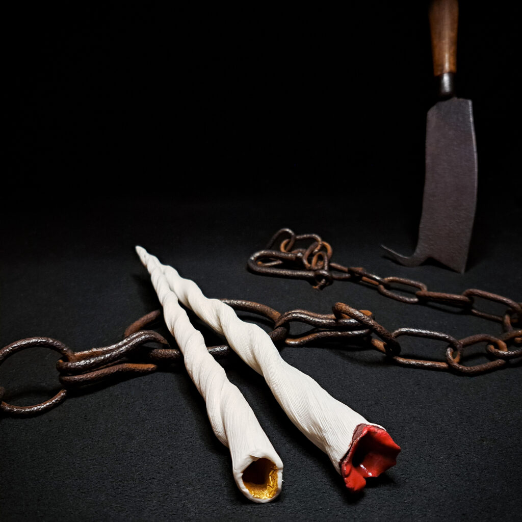 At få et værk til at se levende ud (eller tidligere levende) er nok min absolutte favoritbeskæftigelse på værkstedet. Jeg leger med organiske kurver og skarpe kanter som en anden doktor Frankenstein. Det er ren fryd for min kærlighed til naturvidenskab, horror og science fiction og fantasien får frit spil.